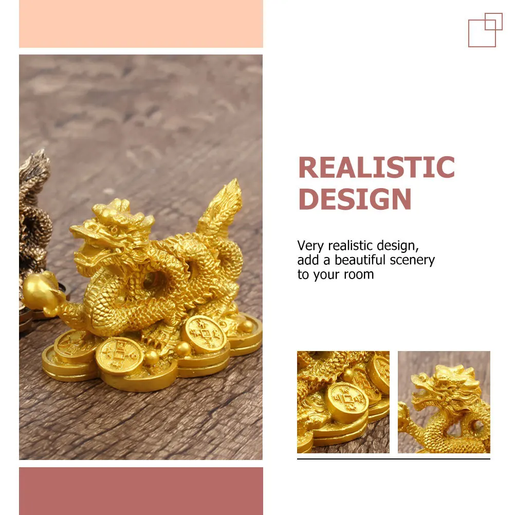 Ornamento Vintage in Resina Drago Qinglong, Scultura Decorativa da Scrivania, Statua di Drago Feng Shui Imitazione Rame, Zodiaco Cinese