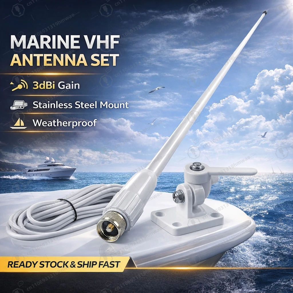 Antenna Marina in Fibra di Vetro VHF 156-163Mhz 43 Pollici con Staffa Regolabile RG58 per la Maggior Parte dei Ricetrasmettitori Marini