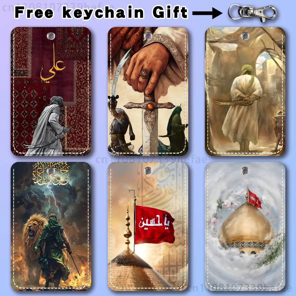 Portachiavi in pelle PU con motivo Imam Hussain Shia Ali, 1 pz, porta tessere, anello portachiavi, tag per serrature, custodia per carte d'identità
