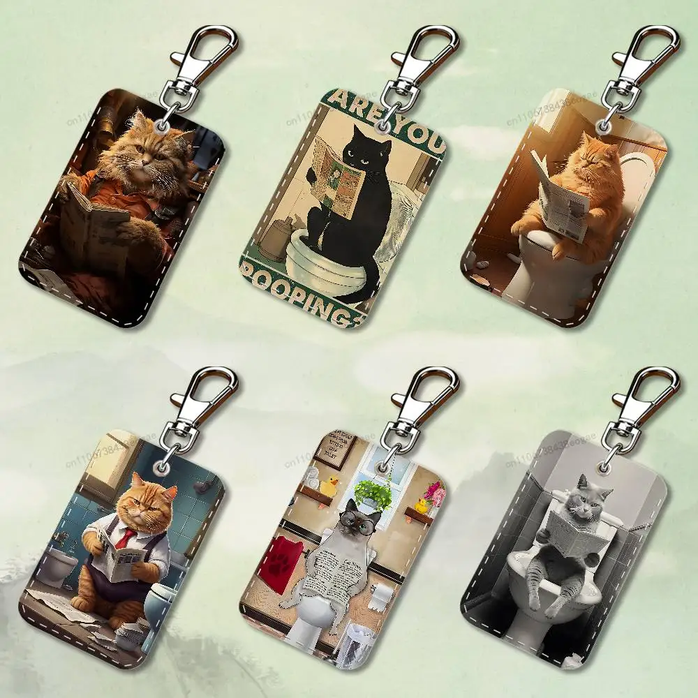 Divertente arte grasso gatto toilette rettangolo porta carte portachiavi porta carte di accesso borsa portachiavi porta carte in pelle accesso portachiavi