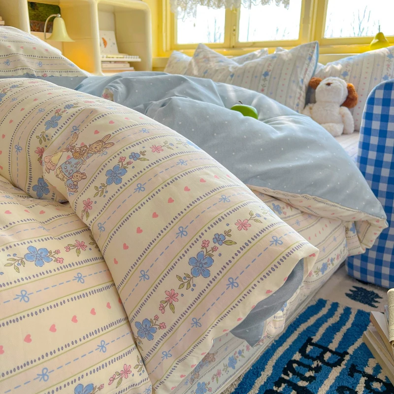 2025 Copripiumino singolo in cotone lavato rugoso con rilevamento della nuvola Copripiumino floreale piccolo stile semplice 160x220 220x240 Biancheria da letto