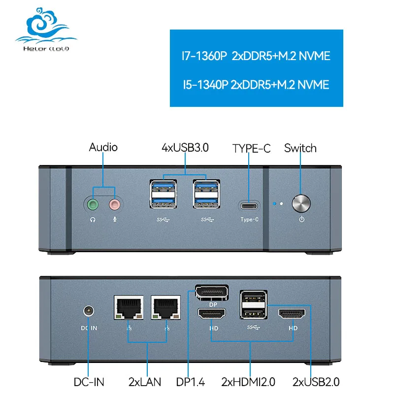 Mini PC Intel Core i7-1360P 2xDDR5 2xM.2 NVMe Dual LAN 2.5G i226 Thunderbolt 4 Type-C WiFi6 4K HDMI2.0 Win11 Computer da Gaming