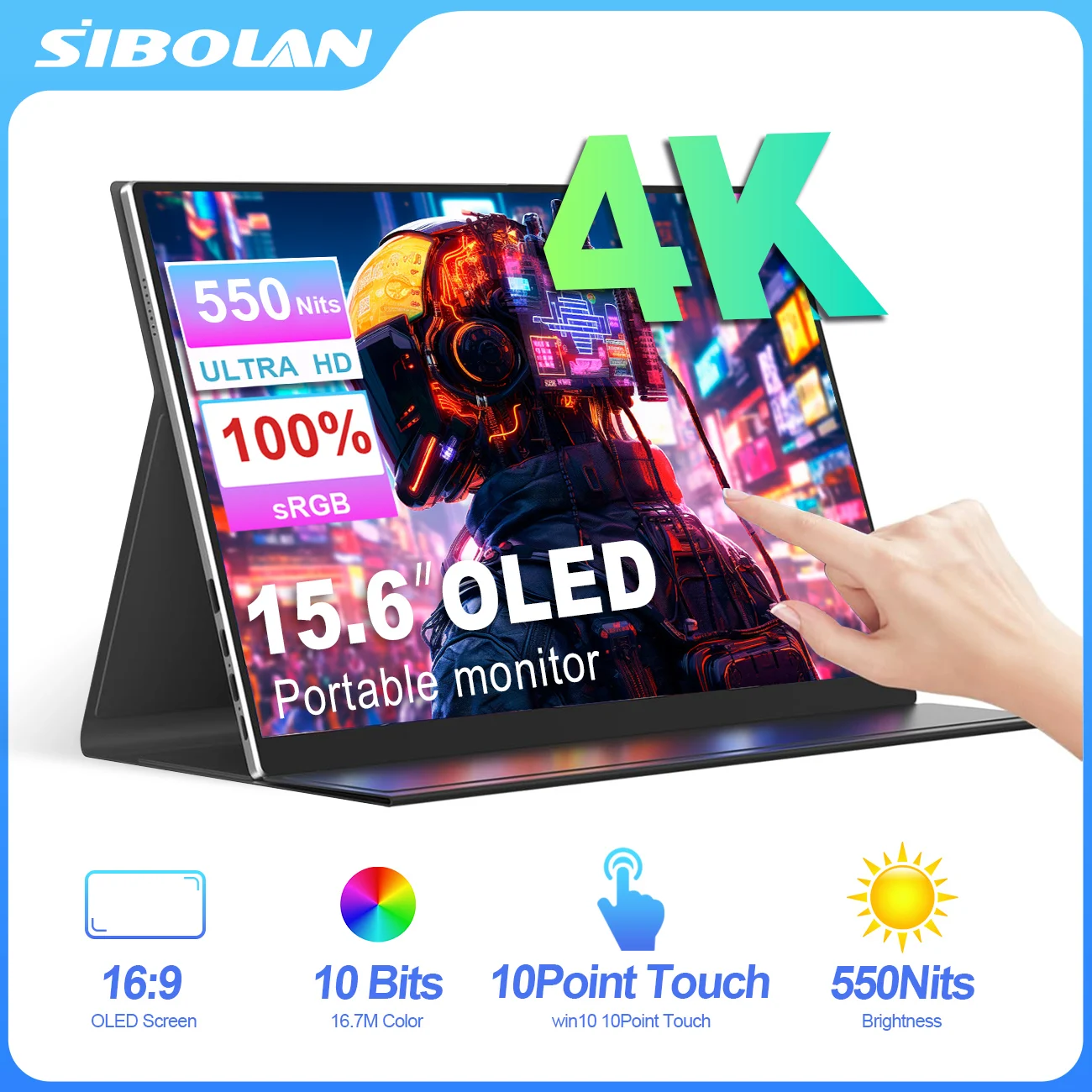 SIBOLAN Monitor portatile OLED da 15,6" 4K Schermo esterno in metallo opaco UHD con 100% sRGB USB C HDMI per telefono, laptop, mini PC, PS4/5