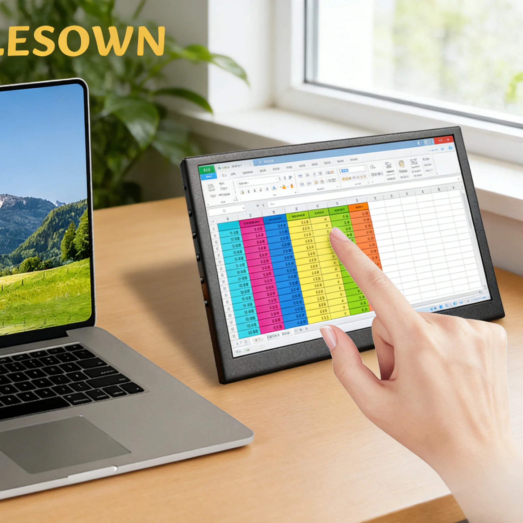 Monitor Portatile LESOWN da 7 Pollici, 1024x600 IPS LCD, Display Piccolo per Viaggi, Schermo Ausiliario per Excel e PC