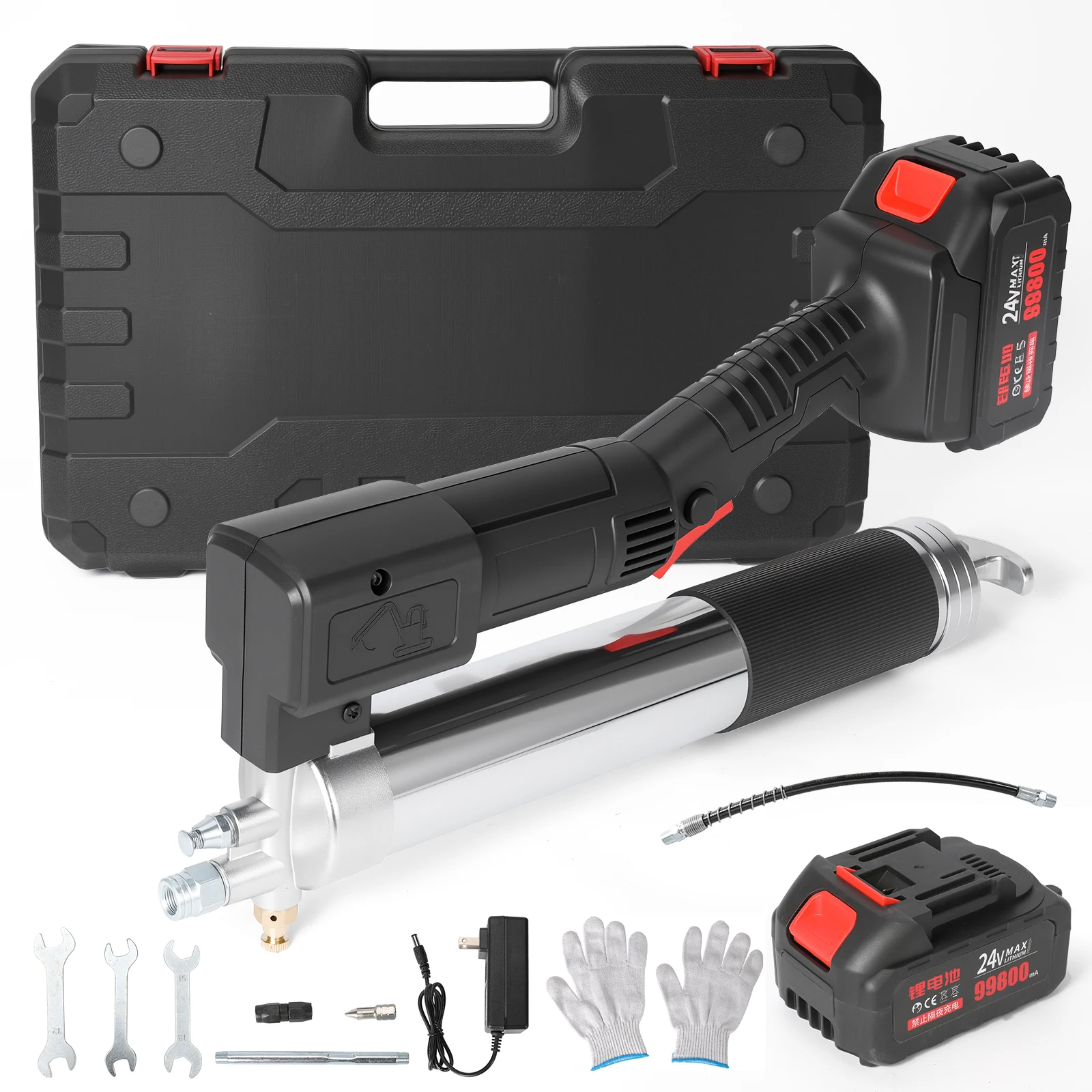 OWJHE 12000PSI 600cc Kit pistola per grasso elettrica a batteria alimentata a batteria con 1 batteria Custodia per caricabatterie inclusa