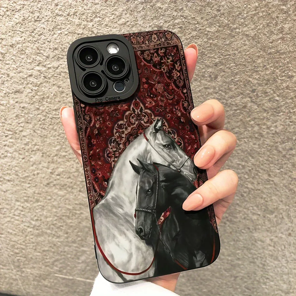 Per Xiaomi 14T Custodia vintage in bianco e nero con motivo cavallo Custodie per Xiaomi 15 14 13 12 11 Lite 5G 13T 12T Pro Cover opaca