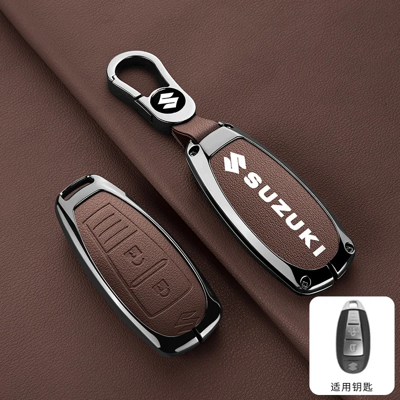 Cover per chiave auto in lega di zinco e pelle per Suzuki Baleno Ertiga Ciaz Ignis Kizashi Swift SX4 S-cross Vitars, con adesivi.