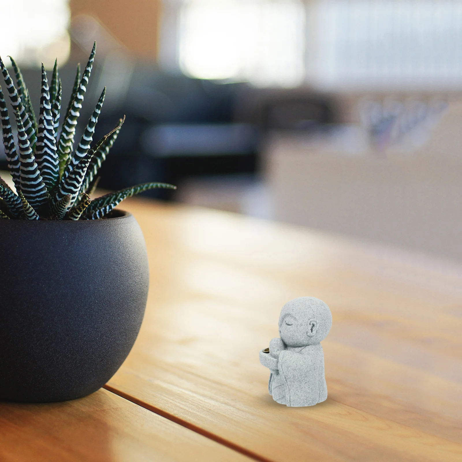 Piccola statua di Buddha dal design intricato, decorazione da giardino da tavolo, scultura di monaco Zen in stile vintage per uso domestico all'aperto