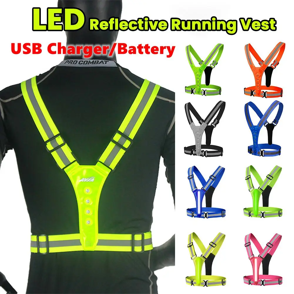 Gilet da corsa riflettente a LED per sport all'aria aperta Gilet riflettente ad alta visibilità con LED lampeggiante elastico regolabile Gilet di sicurezza per ciclismo