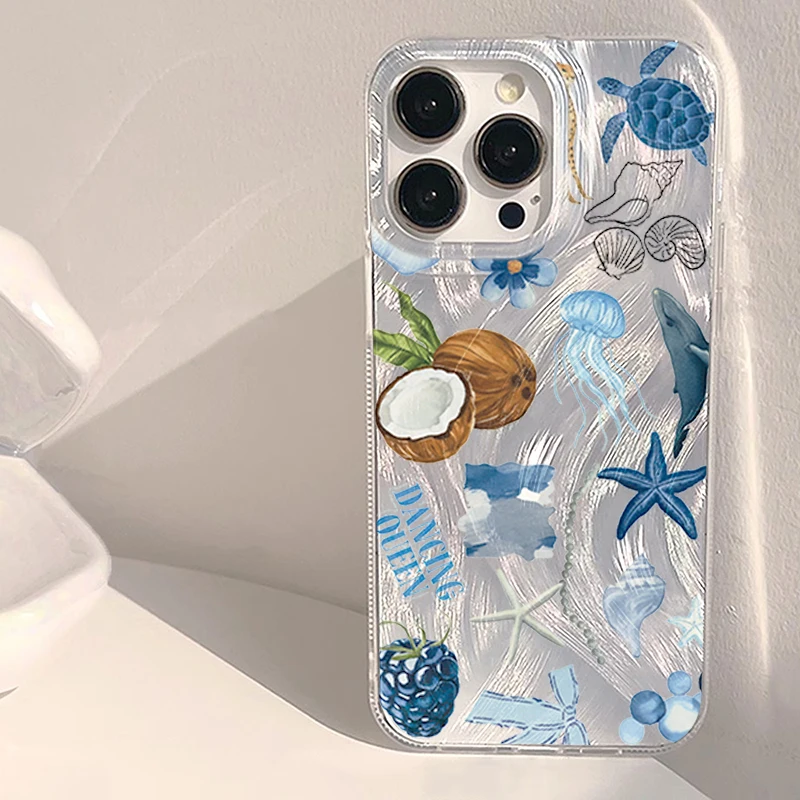 Cover Antiurto Blue Ocean Beach per Xiaomi Redmi Note 11 12 12S 13 14 Pro Plus 5G Redmi 12 13C 14C con Medusa e Tartaruga