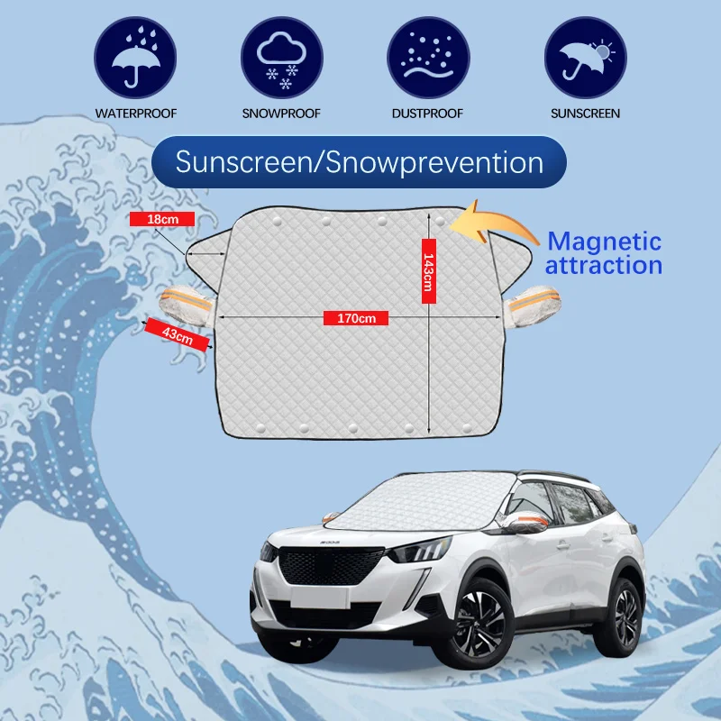 Copertura da neve per parabrezza auto con magneti Protezione premium antigelo per ghiaccio per copertura invernale per Peugeot 2008