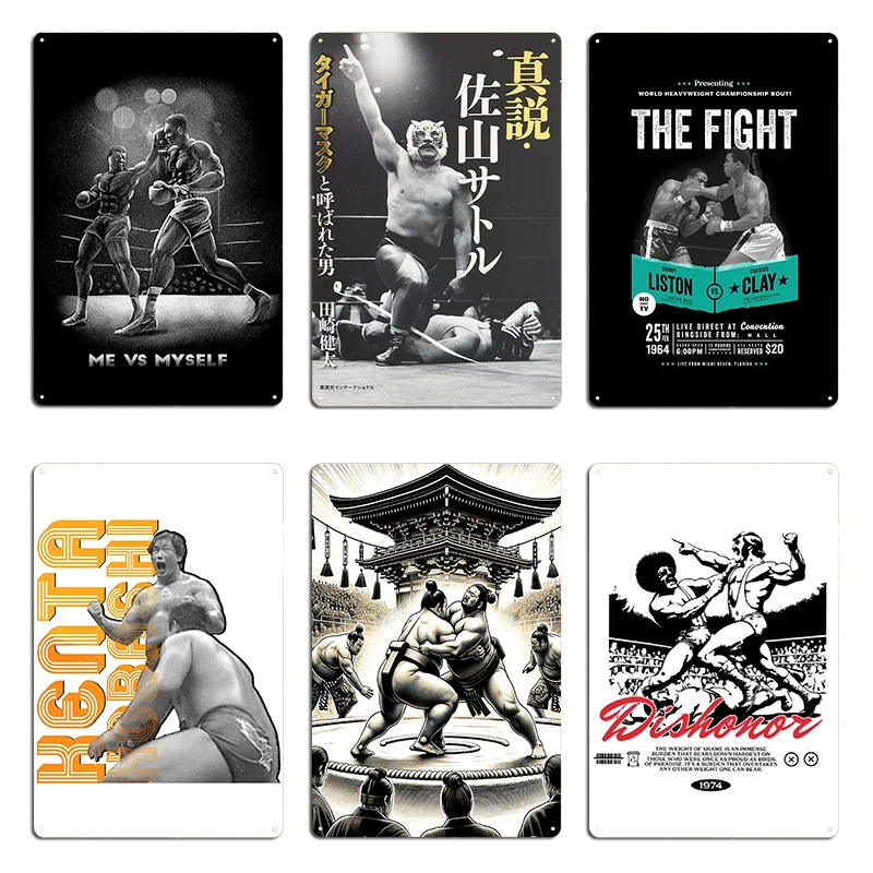 Ali Vs Inoki Boxer Vs Wrestler Targa in metallo Cinema Retro Painting Design Personalizzato Lotta del secolo Targa in metallo Poster