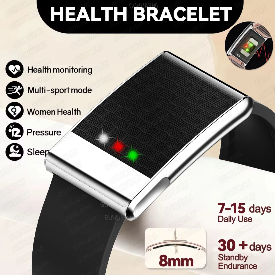Nuovo Braccialetto Intelligente Ultra-sottile Senza Schermo per Uomo, Monitoraggio ECG, Pressione Sanguigna, Frequenza Cardiaca, Notifiche Chiamate, Impermeabile