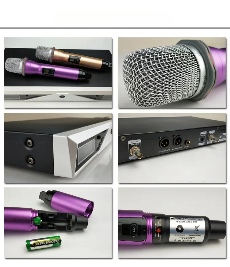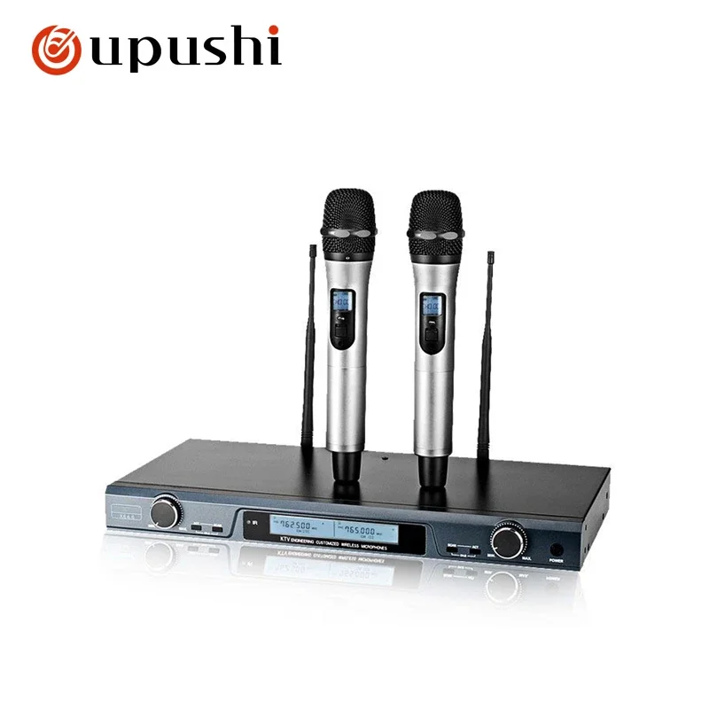 Microfono wireless portatile a doppio canale UHF Microfono dinamico a frequenza fissa per Karaoke Wedding Party Band Church Show