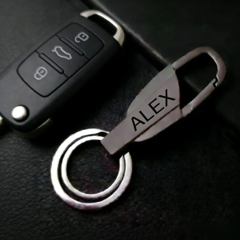 Portachiavi aziendale con testo inciso, portachiavi personalizzato in metallo elegante, design anti-smarrimento, perfetto per il trasporto quotidiano, essenziale per i signori