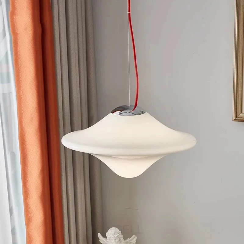 Lampade a sospensione moderne in vetro bianco latte Lampada a sospensione nordica con disco volante per ristorante Soggiorno Caffetteria Reception dicembre
