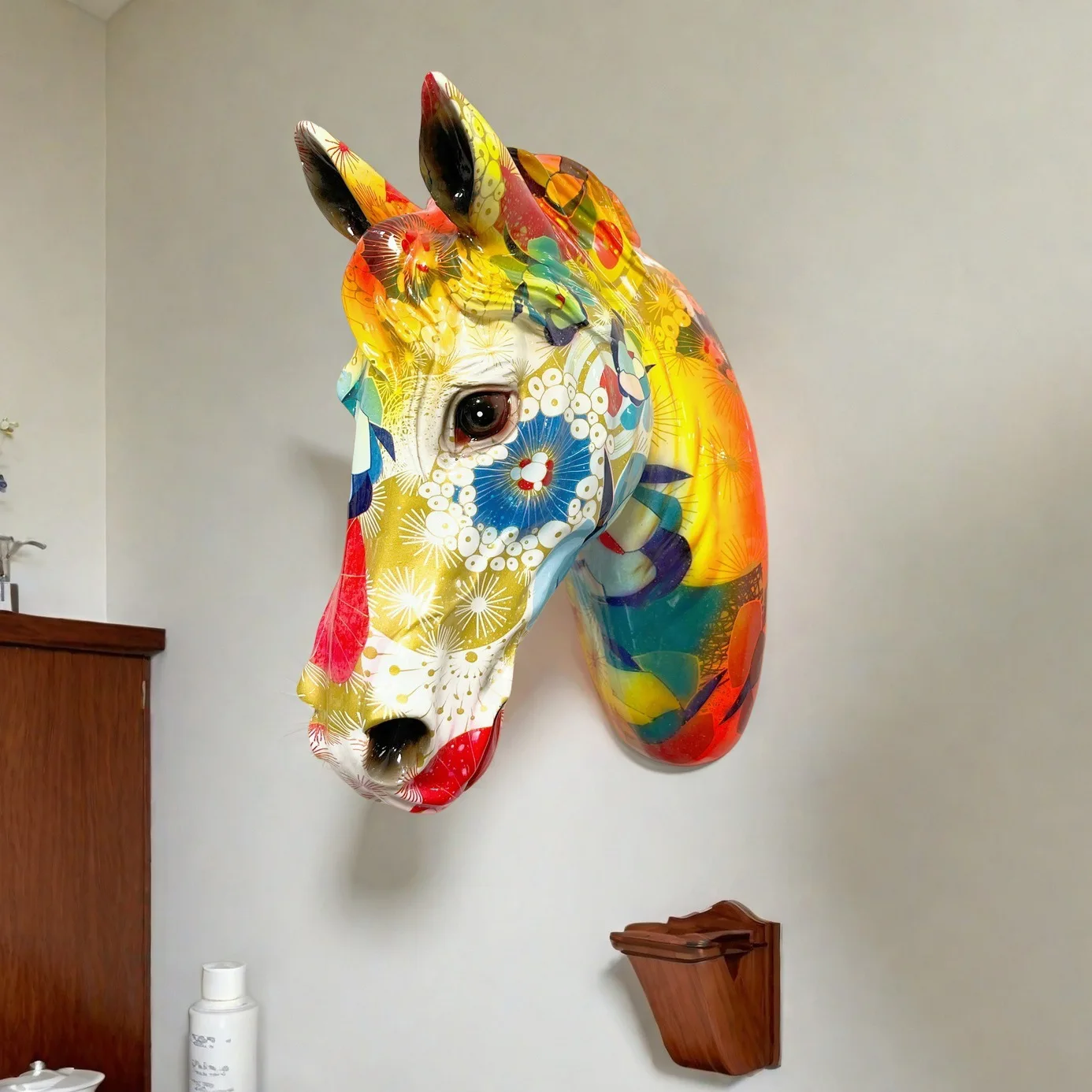 Decorazione da Parete 3D a Forma di Testa di Cavallo, Statua Colorata, Accessori per la Casa, Decorazione Animale in Resina, Decorazione Natalizia, Scultura Nordica