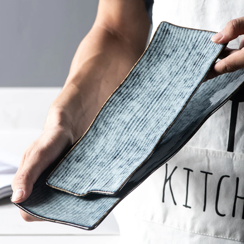 Piatto da Sushi in stile giapponese piatto rettangolare in ceramica Sashimi piatto creativo stoviglie piatto giapponese commerciale lungo irregolare