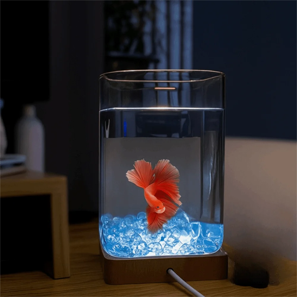 Mini Acquario da Tavolo Creativo con Illuminazione LED e Sistema di Filtrazione Integrato, Piccolo Acquario per Pesci Rossi, Betta, Gamberetti