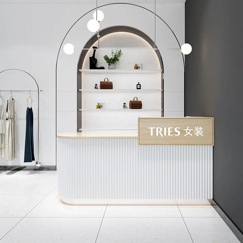 SJN negozio di abbigliamento pagina di cassa negozio di abbigliamento femminile grotta modello pietra tavolino da bar con luce semplice e moderna bancone