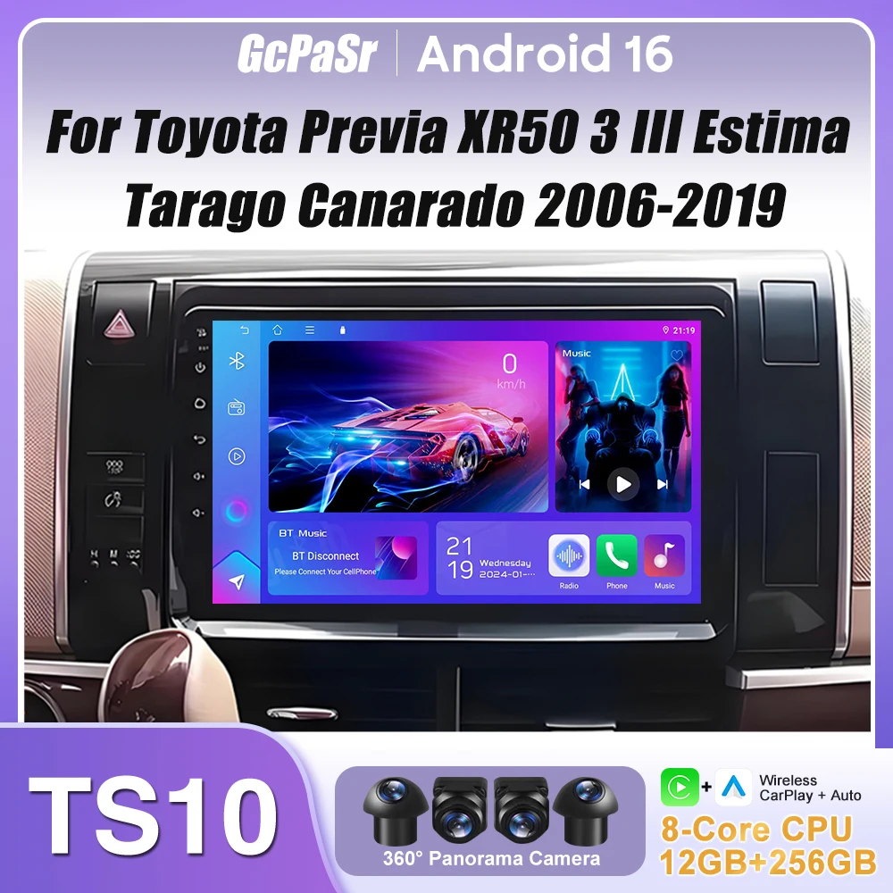 Autoradio Carplay per Toyota Previa XR50 3 III Estima Tarago Canarado 2006-2019 Senza 2din Navigazione GPS Android 16 4G Senza 2din DVD