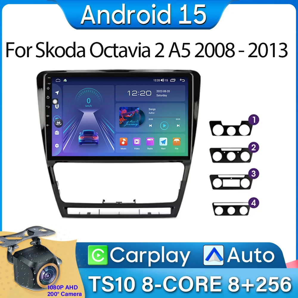 Per Skoda Octavia 2 A5 2008-2013 Autoradio Android 15 Navigazione GPS Android Auto Android 15 Stereo Carplay Unità Dello Schermo No 2din