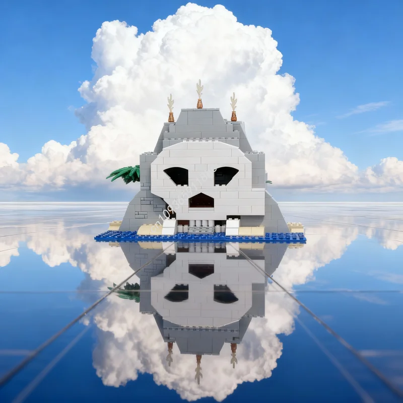 574 Pezzi MOC Modello di Isola Vulcanica dei Pirati, Blocchi da Costruzione, Giocattoli Fai-da-Te, Regali di Natale, Idea Creativa Educativa