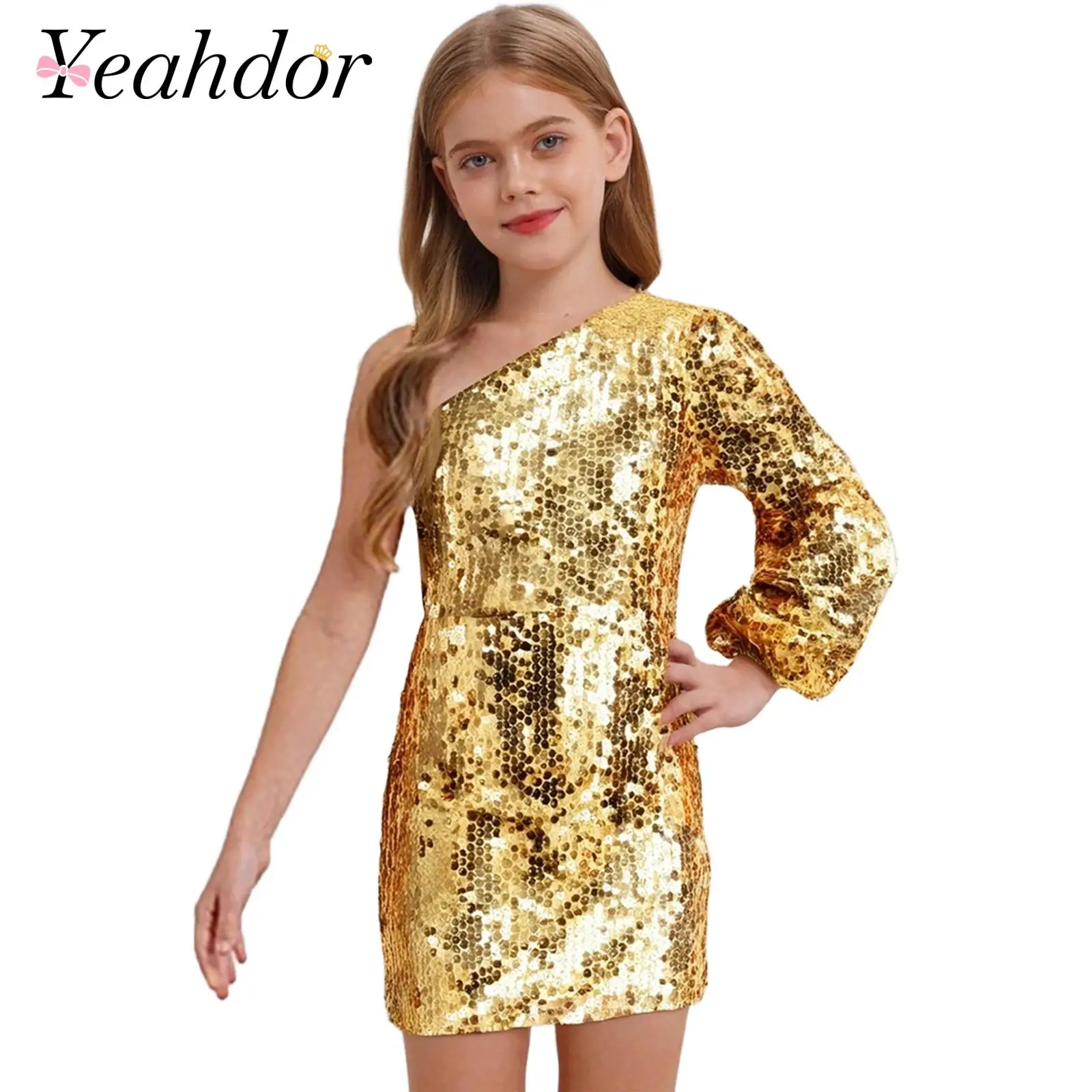 Abito con Paillettes Scintillanti per Bambine, Costume per Festival Musicali, Vestito Sopra il Ginocchio per Compleanni, Concorsi, Matrimoni e Feste Serali