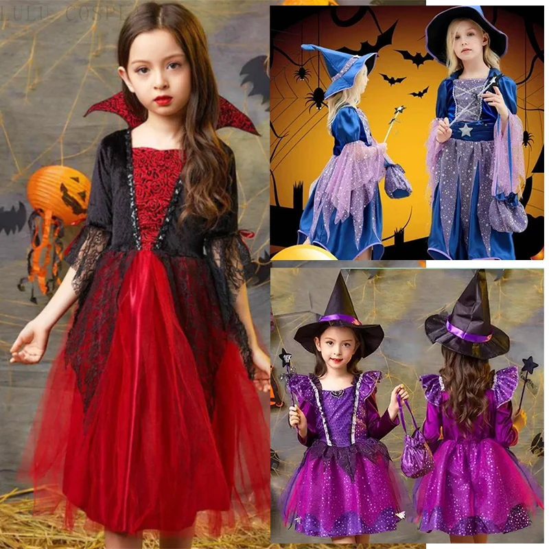 Costumi da Strega Magica per Bambini, Abito da Sposa Fantasma per Halloween, Costume da Vampiro per Feste di Compleanno, Vestito da Strega in Tulle per Ragazze