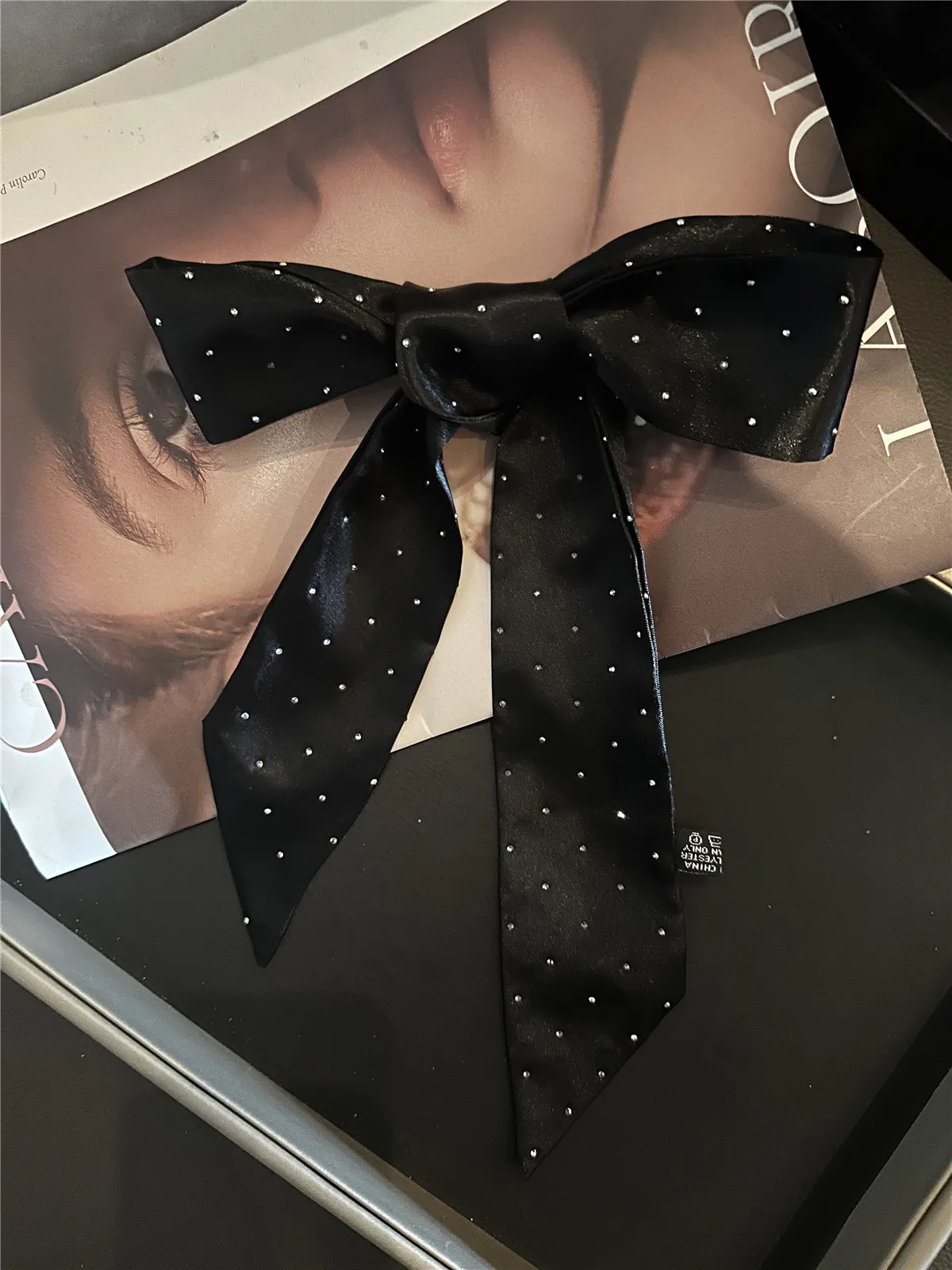 Sciarpa di seta lunga tempestata di diamanti di eleganza francese, cravatta per capelli alla moda da donna per panini e code di cavallo, lussuosa fascia per capelli
