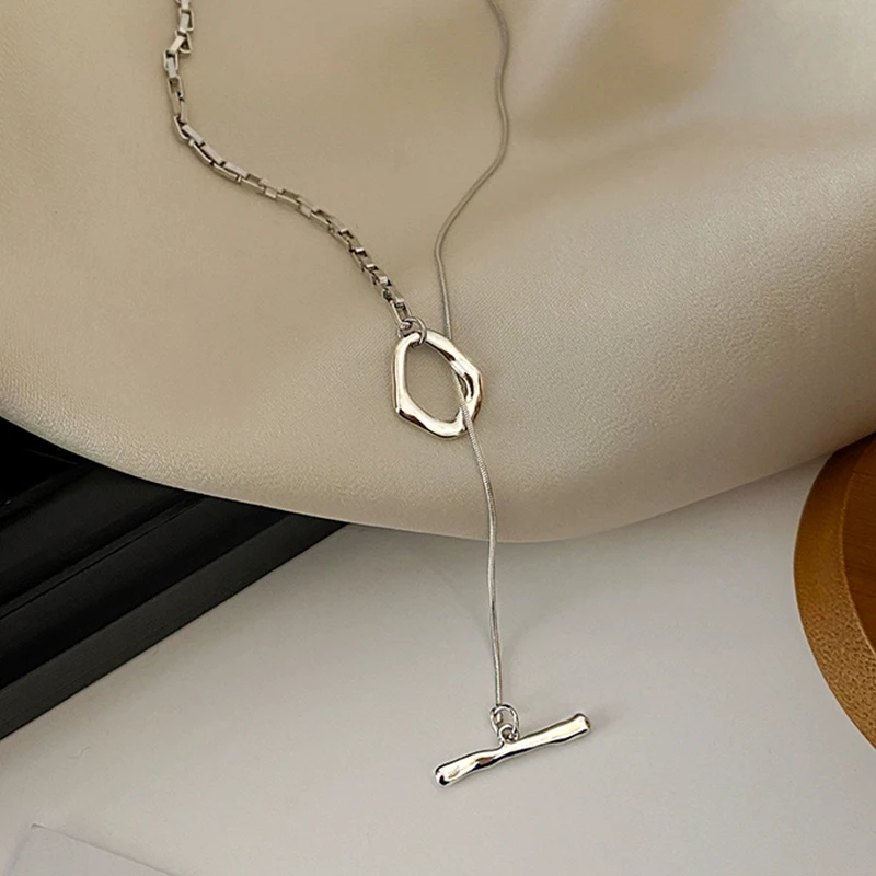 ZAKOL stile coreano O T collane maglione per donna uomo colore argento metallo catena lunga clavicola regali di gioielli per feste quotidiane