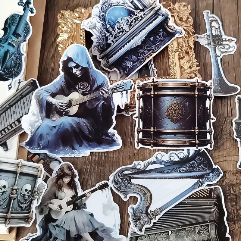 1 set di adesivi per diario creativo e decorazioni per skateboard, laptop, casco, moto, con motivo Ragazza musicista Dark Wind con chitarra in acquerello