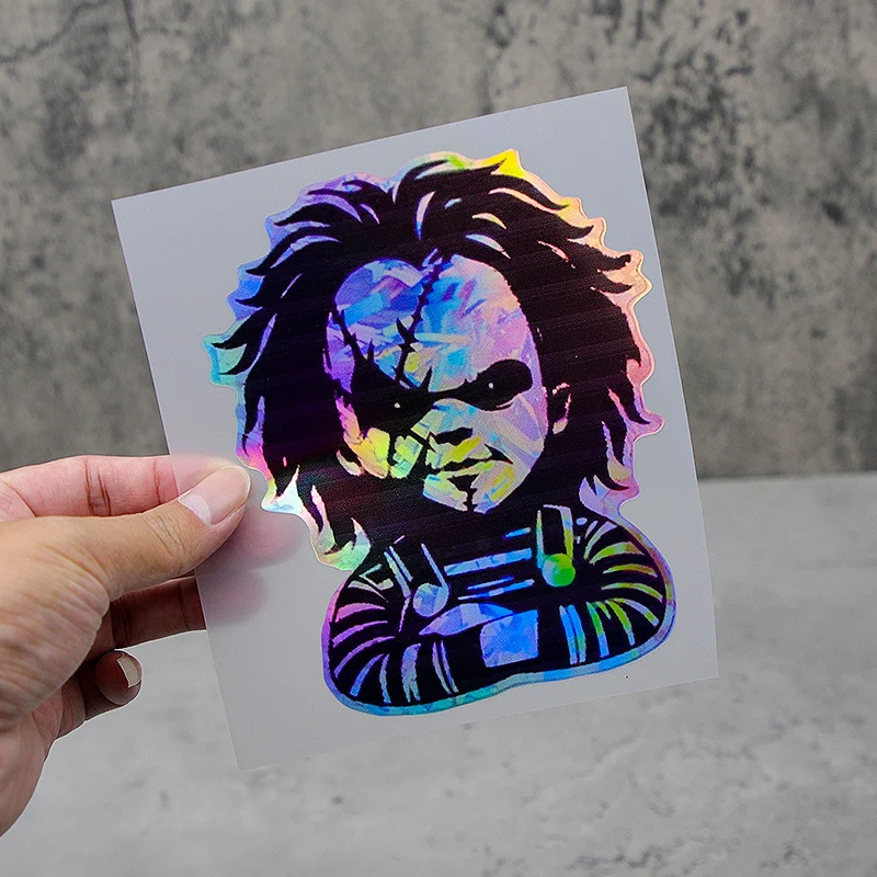 Adesivo moto piatto 2D, adesivo cool marea scura fai da te | Adesivo in vinile impermeabile colorato laser Ghost Baby Chucky, conto a mano