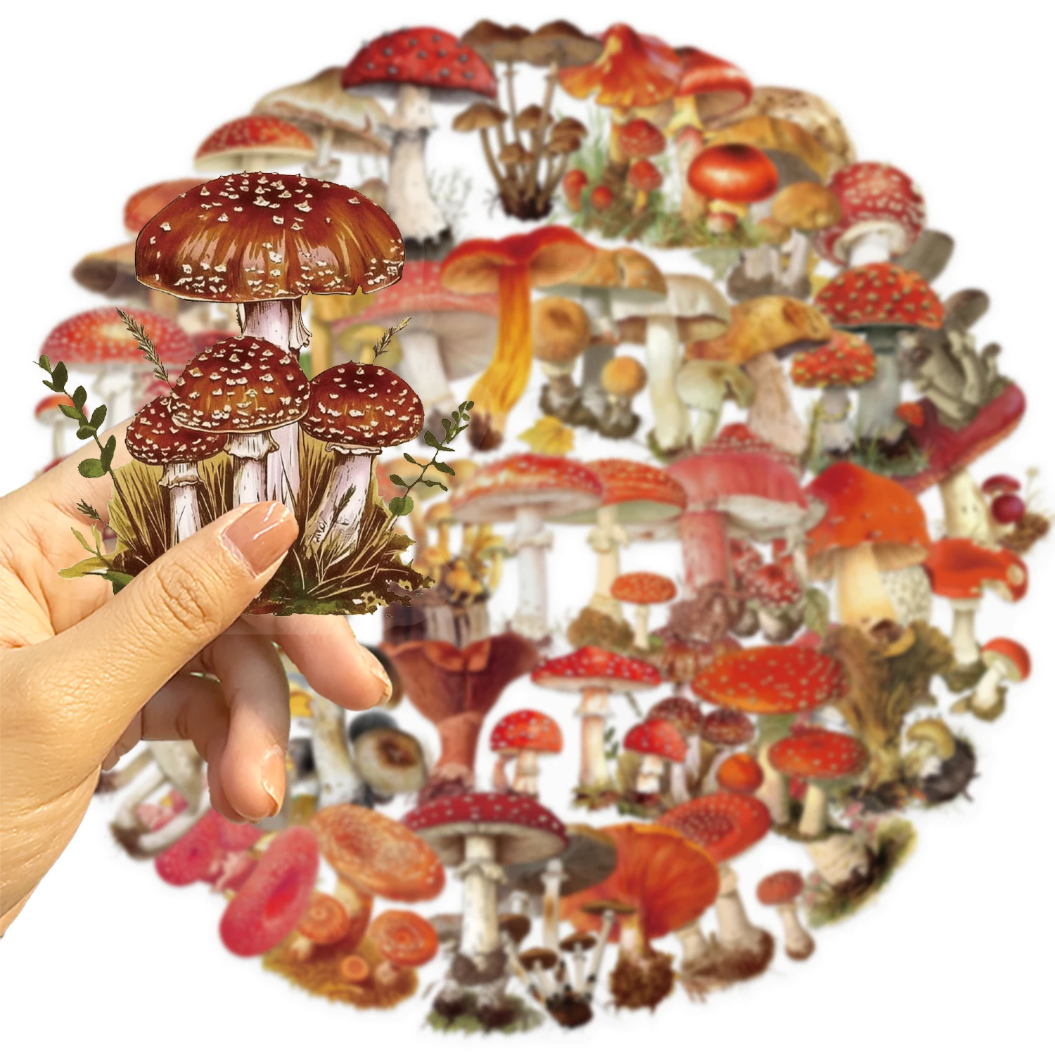 50 pezzi adesivi graffiti funghi retrò conto fatto a mano adesivi impermeabili PET per notebook per bagagli fai da te