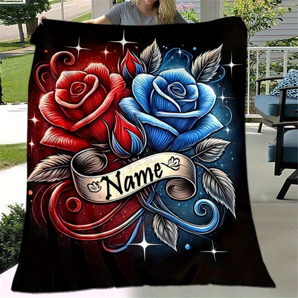 Coperta in flanella rosa rossa e blu con nome personalizzato, morbida coperta, adatta per divano, letto, compleanno, bambini, amici, regali
