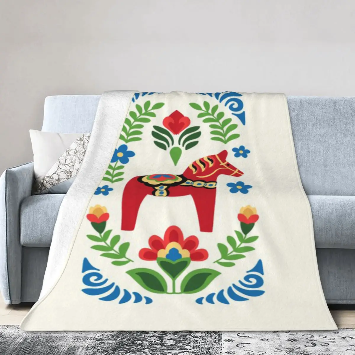 Regalo personalizzato rosso con cavalli svedesi Dala per i genitori, calda una coperta in micropile ultra morbida