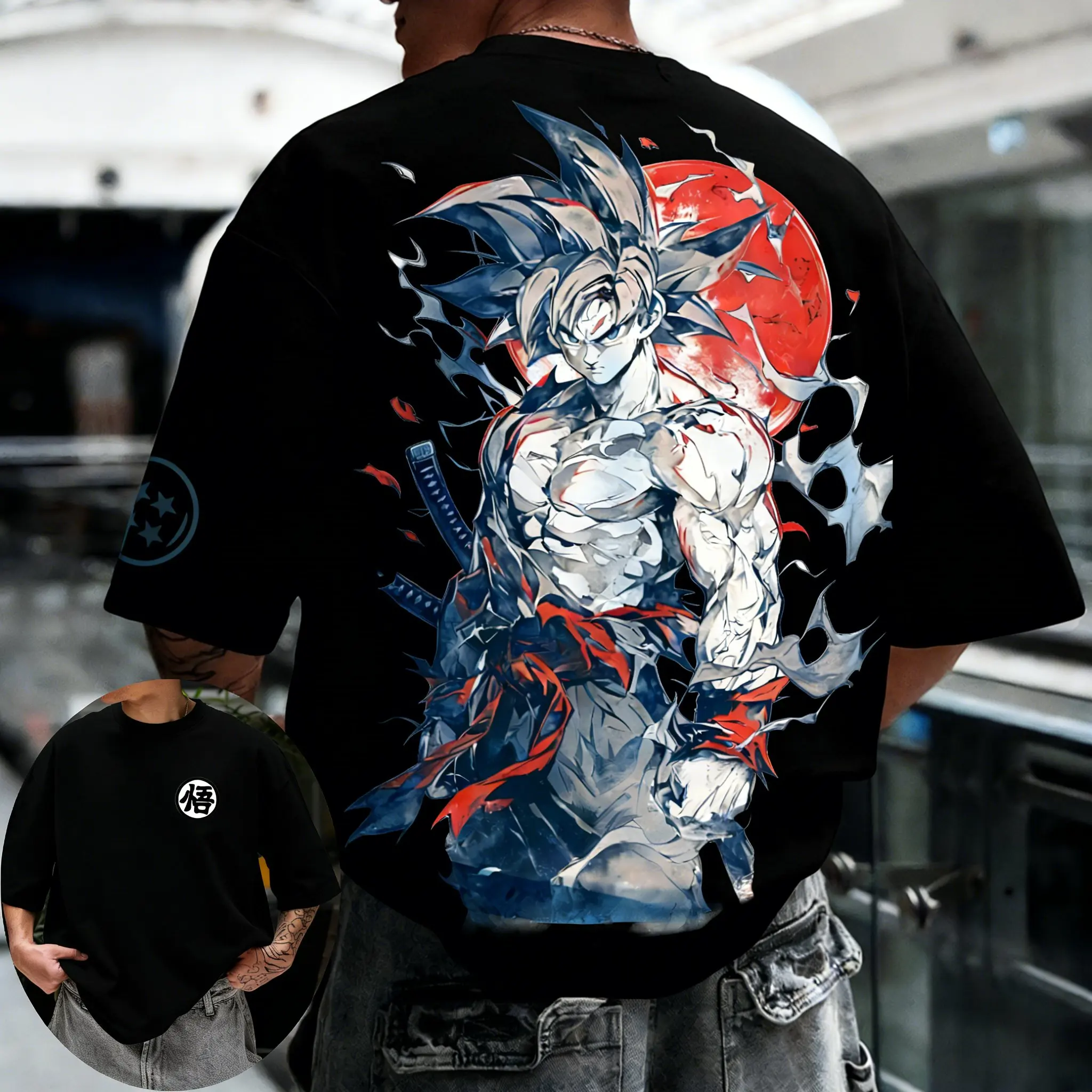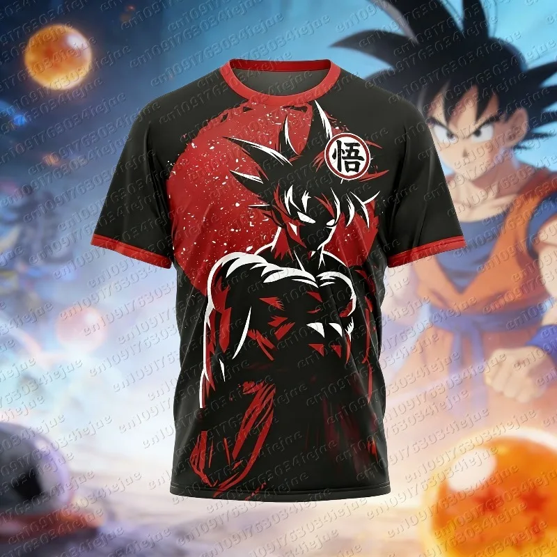 T-shirt da uomo in cotone traspirante a maniche corte girocollo con stampa anime Dragon Ball GUKO, collezione Primavera Estate 2026, vestibilità ampia