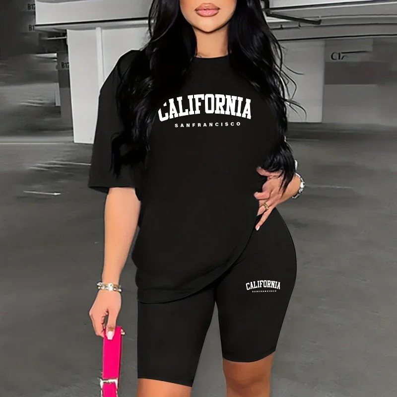 Nuova Tendenza Abbigliamento Sportivo Estivo da Donna, Set 2 Pezzi con T-shirt a Collo Tondo e Pantaloncini, Outfit Casual Versatile per Casa e Attività all'Aperto
