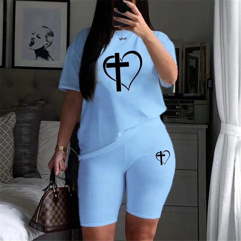 Completo sportivo estivo da donna 2026 di nuova moda: pantaloncini e t-shirt sportiva di alta qualità con stampa a cuore, perfetti per l'abbigliamento casual quotidiano e lo streetwear.