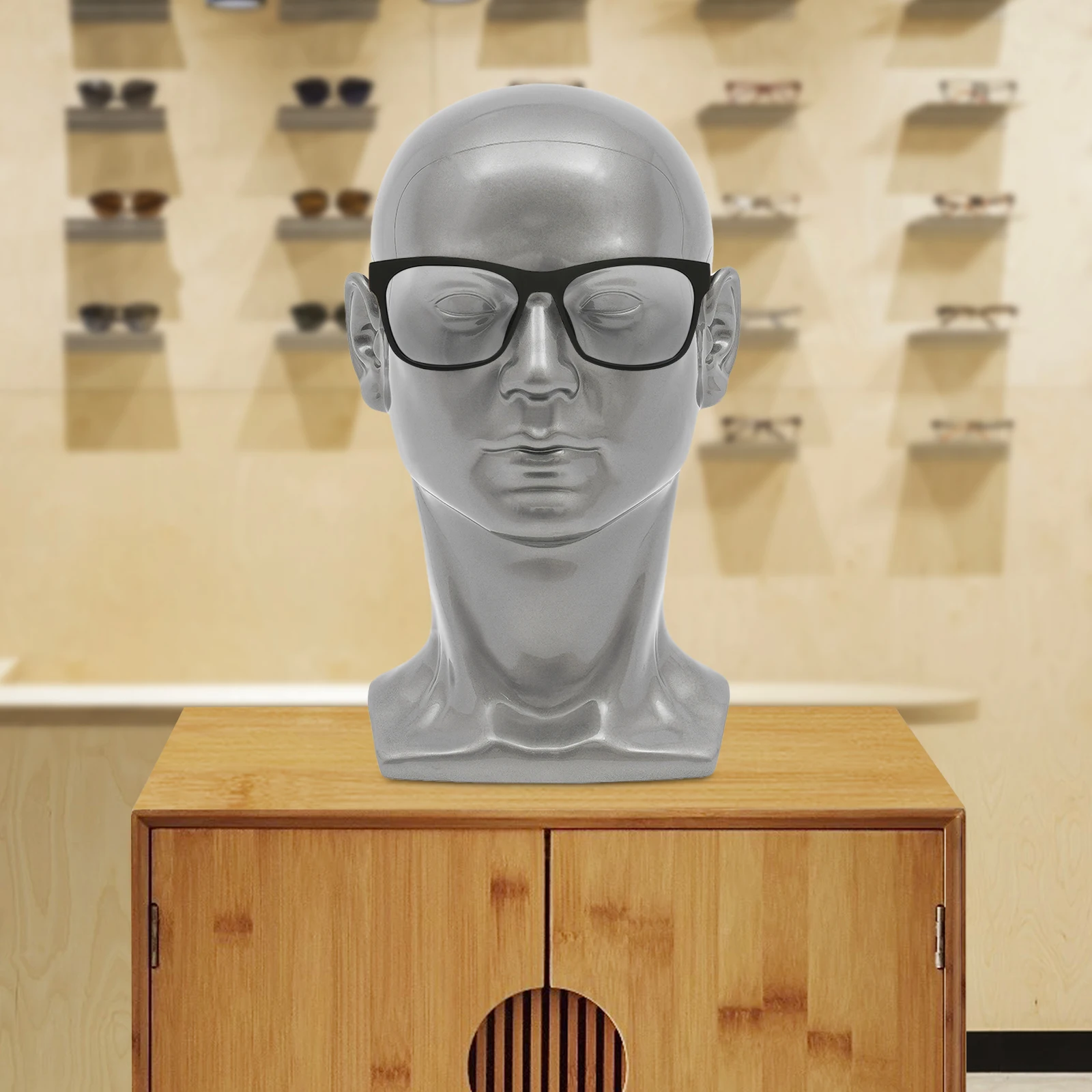 Manichino testa maschile (50 cm grigio brillante) Modello di visualizzazione professionale per negozi, parrucchieri, negozi di cappelli, centri commerciali