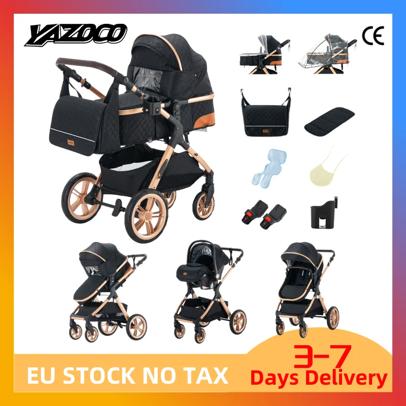 Passeggino Culla reversibile ad alto paesaggio Ruote anti-shock Carrozza per neonato pieghevole Sistema da viaggio portatile