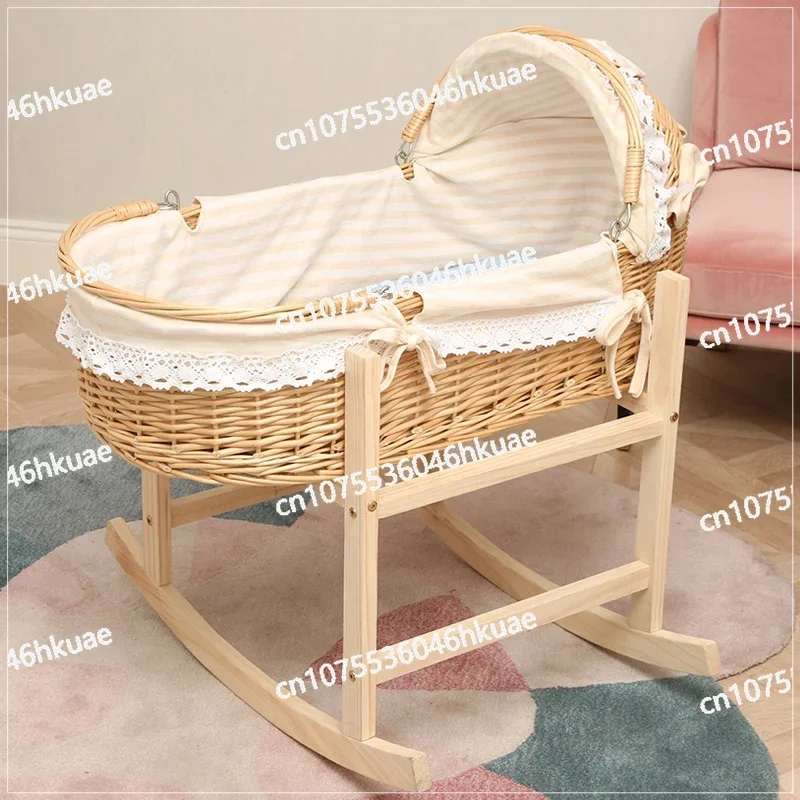 2024 Lettino portatile in legno aggiornato con 360 ° Ruote girevoli Baby Rocker per neonato 0-24 mesi