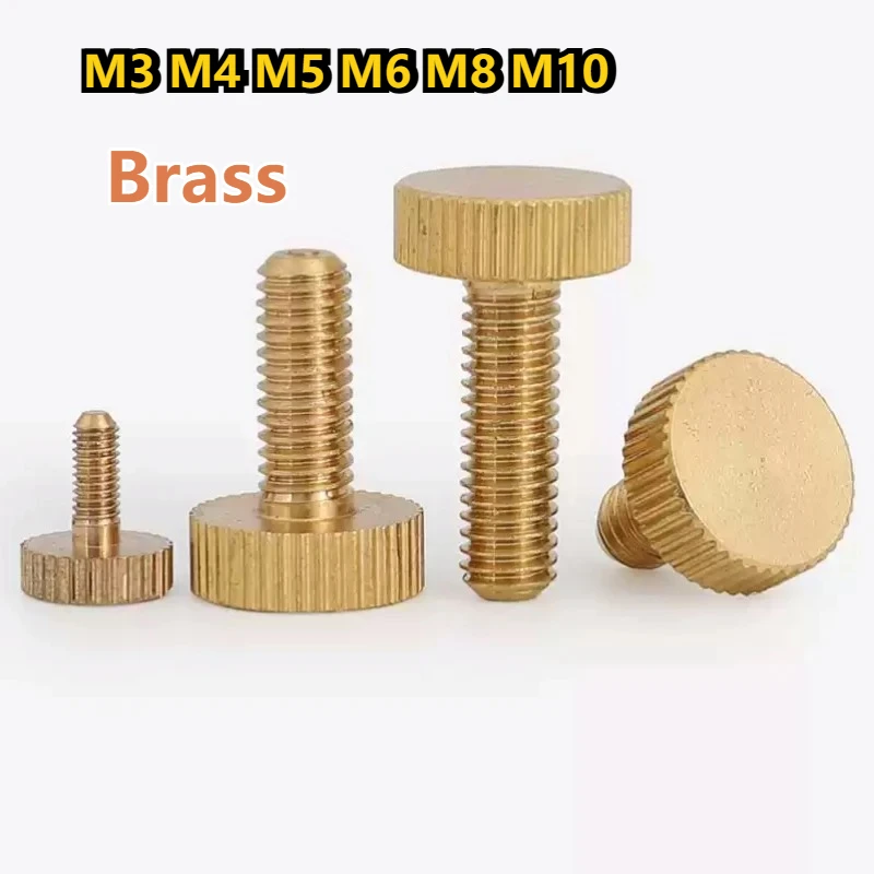 Vite a mano a testa piatta zigrinata in ottone M3 M4 M5 M6 M8 M10 GB835 Vite a mano zigrinata a testa grande in rame puro Maniglia Vite di serraggio 2-10 pezzi