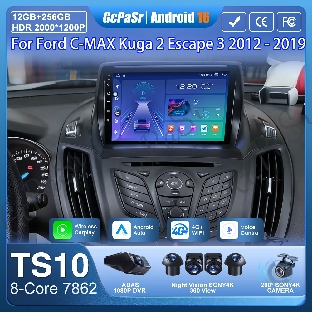 Autoradio Carplay per Ford C-MAX Kuga 2 Escape 3 2012 - 2019 navigazione GPS Android Auto Bluetooth Multimedia Player No 2din DVD