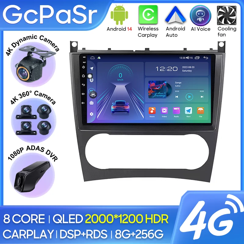 Autoradio Carplay Per Mercedes Benz W203 W209 C180 C200 C220 C230 2005 - 2009 Navigazione GPS Android Auto Bluetooth Unità No 2din