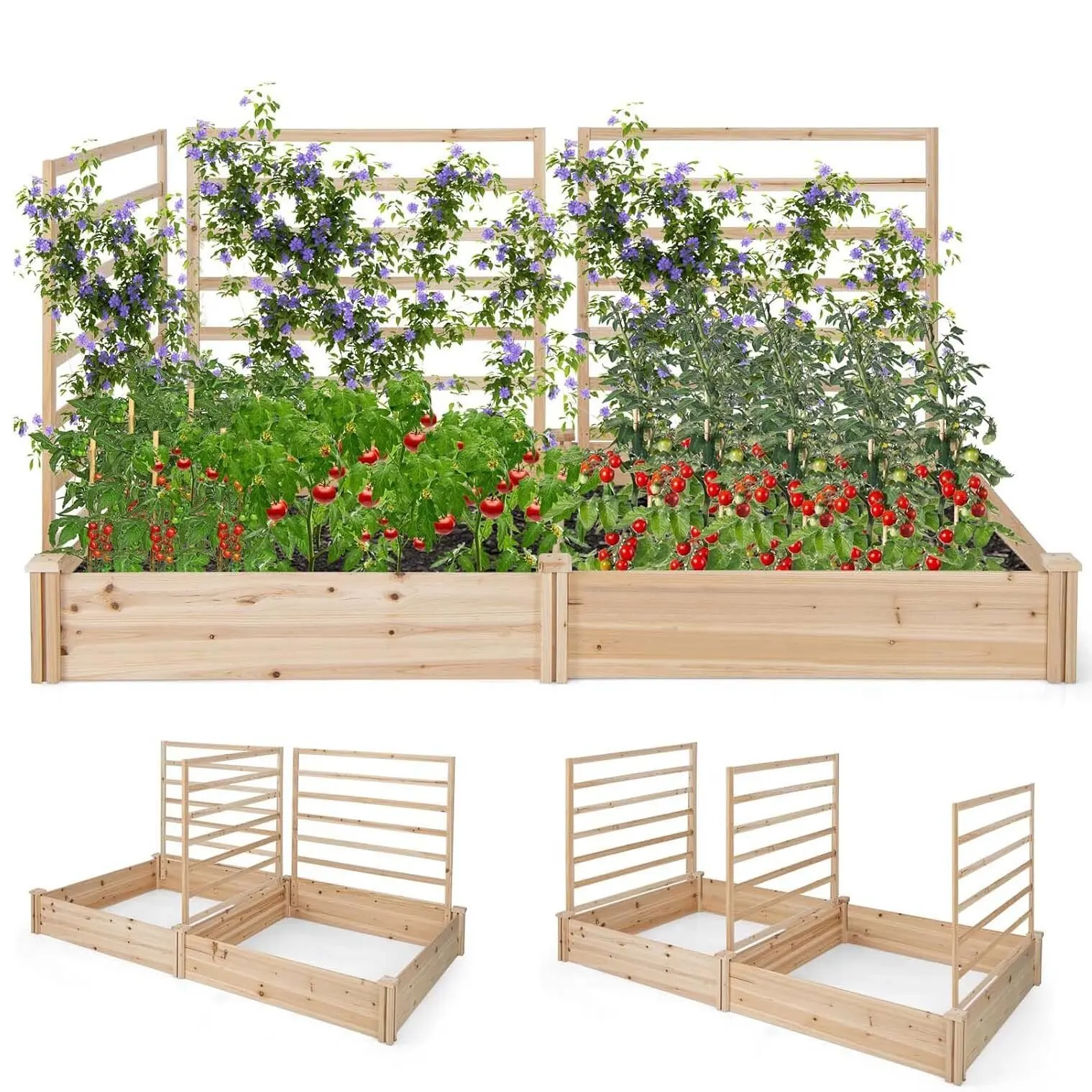 Letto rialzato con traliccio, fioriera con traliccio, fioriera in legno di abete, traliccio da giardino con traliccio, vaso da fiori (222 x 114 x 110 cm)