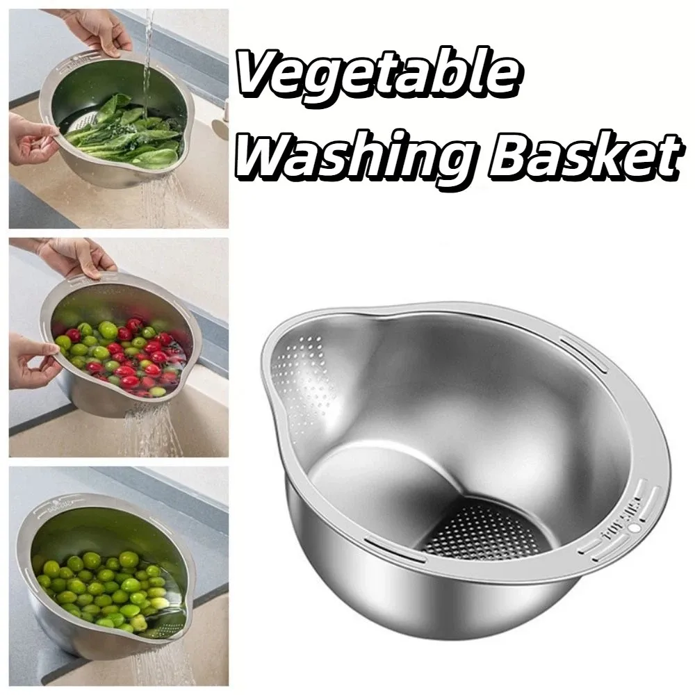 Cestino per lavare le verdure riutilizzabile, set di ciotole per colino in acciaio inossidabile antiruggine, cestello scolapiatti impilabile con perforazioni fini