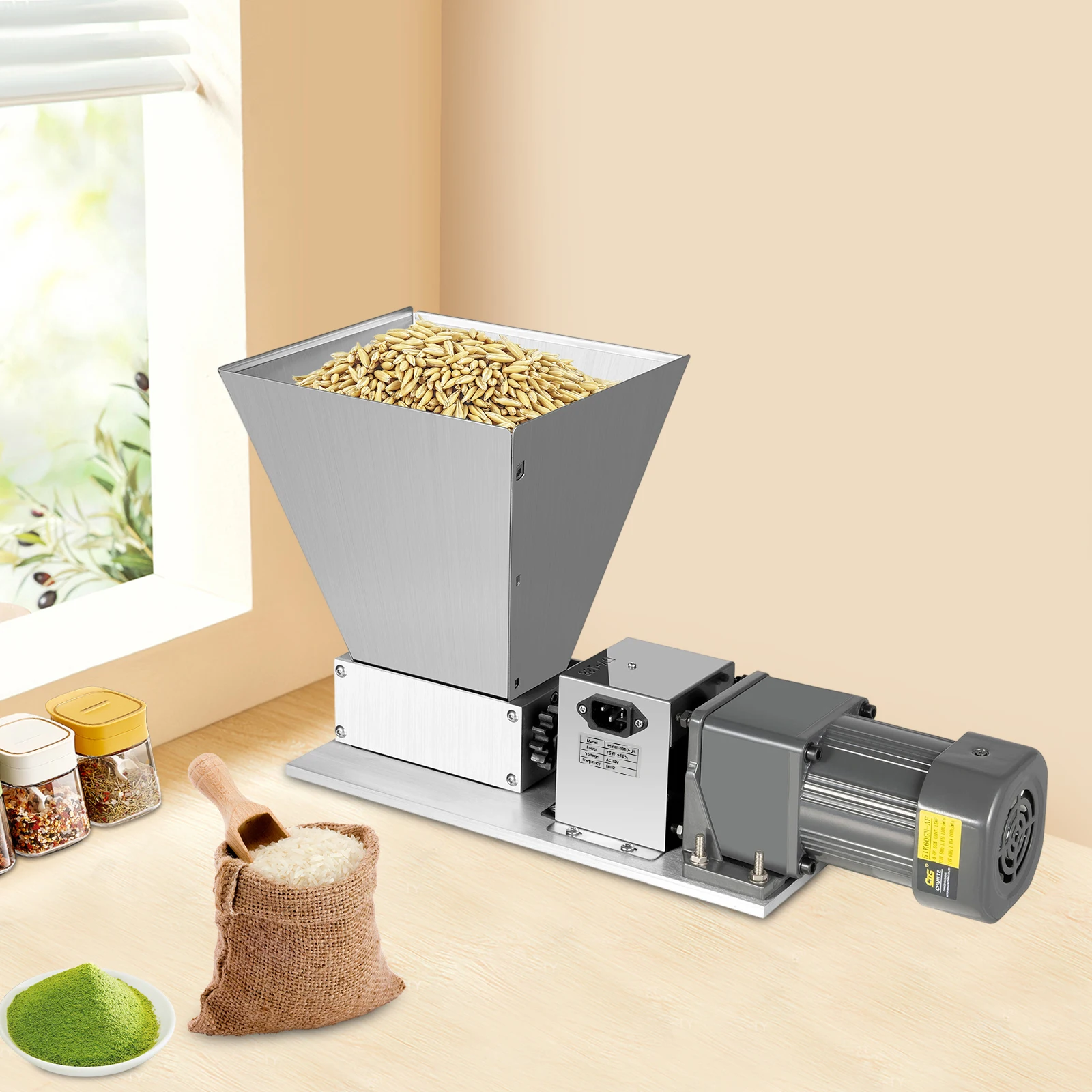 Macinatore Elettrico 220V in Acciaio Inossidabile per Cereali a Grana Grossa 4L 75W, Macinatore per Cereali Umidi/Secchi, Trituratore per Malto e Mangimi