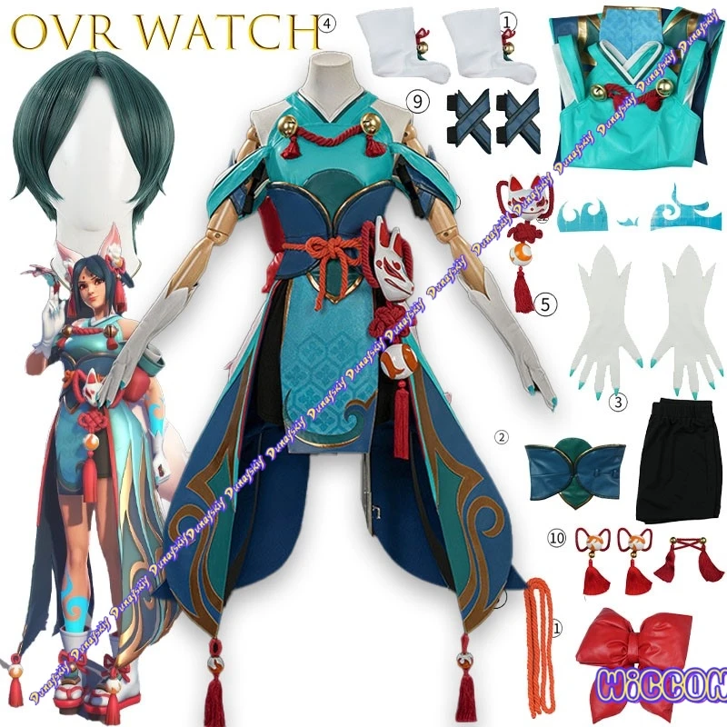 UhA Kiriko Costume Cosplay Inari Fox Shrine Maiden Outfit Ove wwatch Personaggio del gioco Gioco di ruolo Set Ragazze Gioco di ruolo Halloween