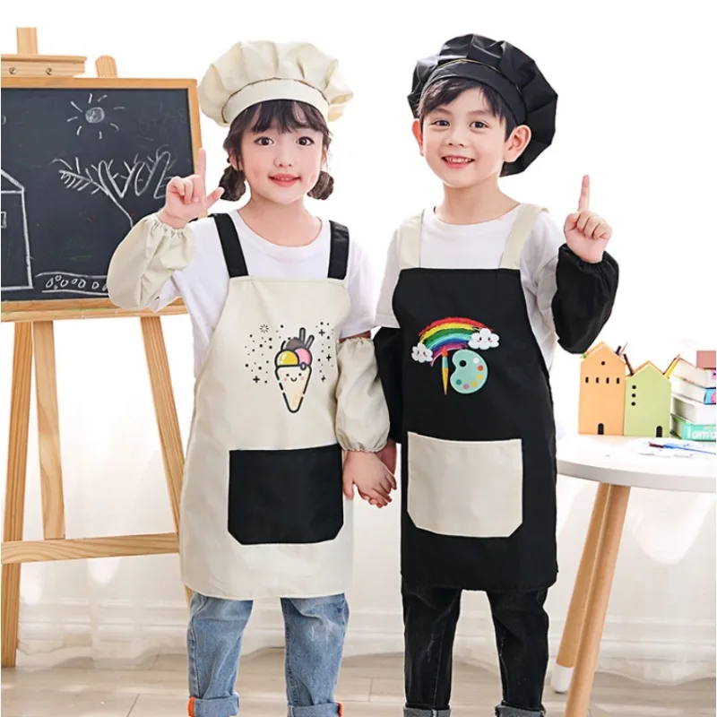 Grembiuli per bambini Kawaii Set da 3 pezzi Grembiule da pittura Ragazzi Ragazze Impermeabile Asilo Arte Cucina Grembiuli da cucina Disegno Grembiule